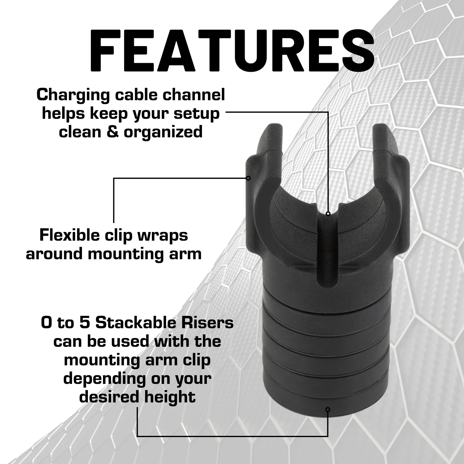 Added stability with cable routing. The 2 included Height-Adjustable Mounting Arm Supports provide additional support to your device mounting arms while also offering a built-in channel to route charging cables cleanly.